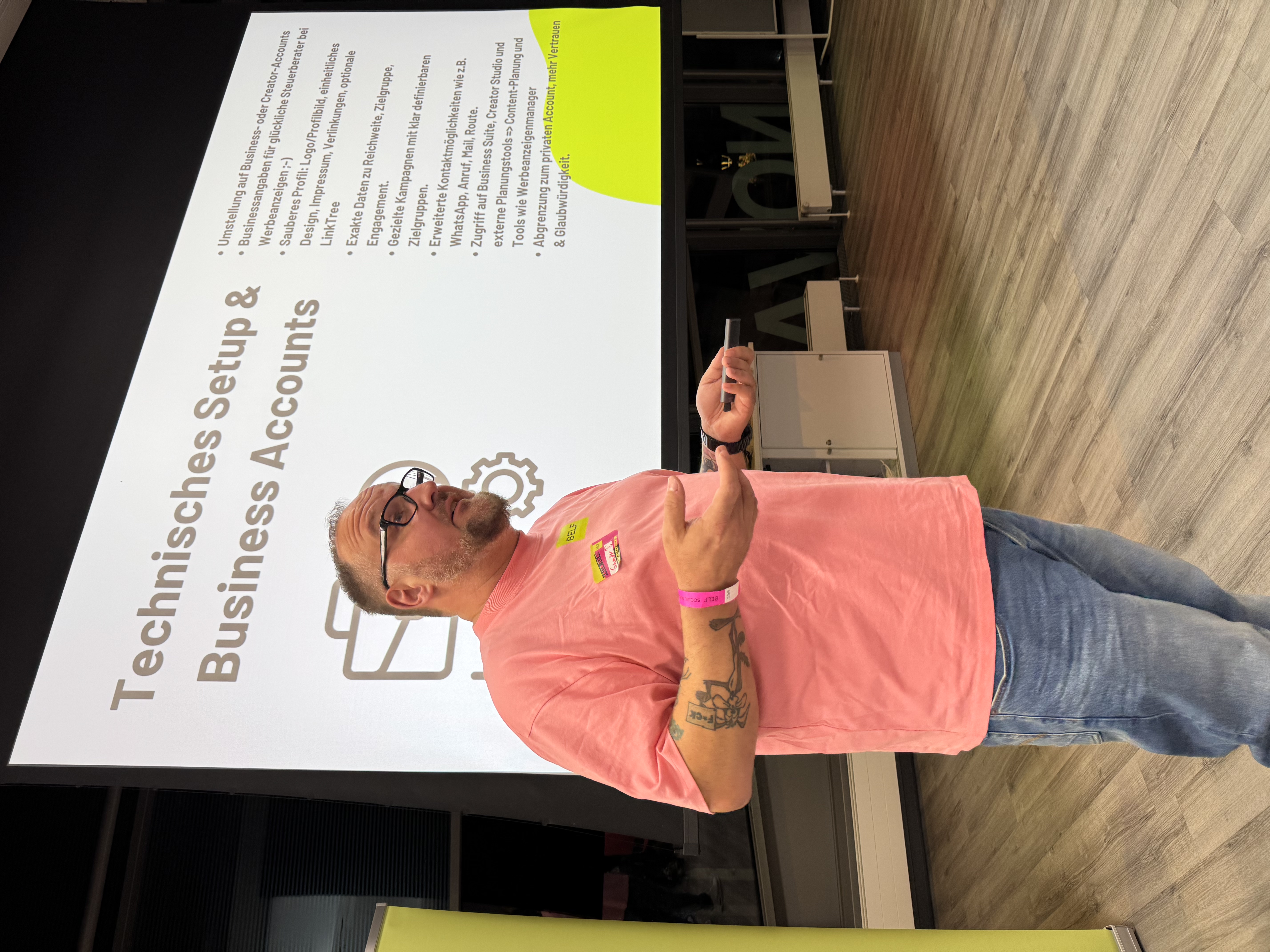 Nach seiner Keynote ging Dennis noch tiefer in sein Thema: Er lüftete die Geheimnisse der Social-Media-Algorithmen und erklärte, wie man Plattformen wie Instagram, LinkedIn & Co. gezielt für mehr Reichweite und Engagement nutzt.