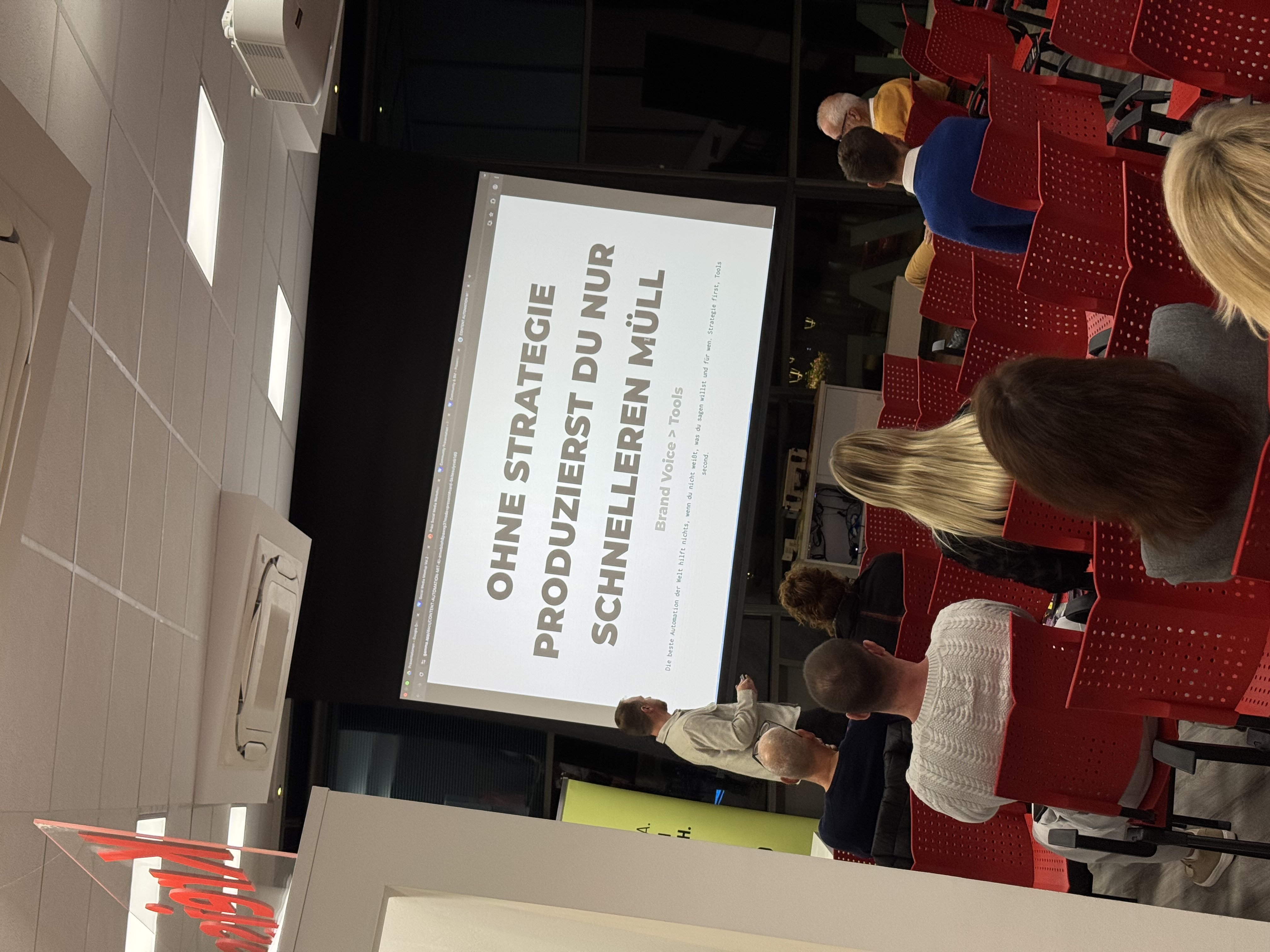Marcus entführte die Teilnehmer in die Welt der Künstlichen Intelligenz: Von Tools, die Content fast automatisch erstellen, bis hin zu Workflows, die den Arbeitsalltag erleichtern. Zukunftsmusik? Nein – hier und heute umsetzbar.